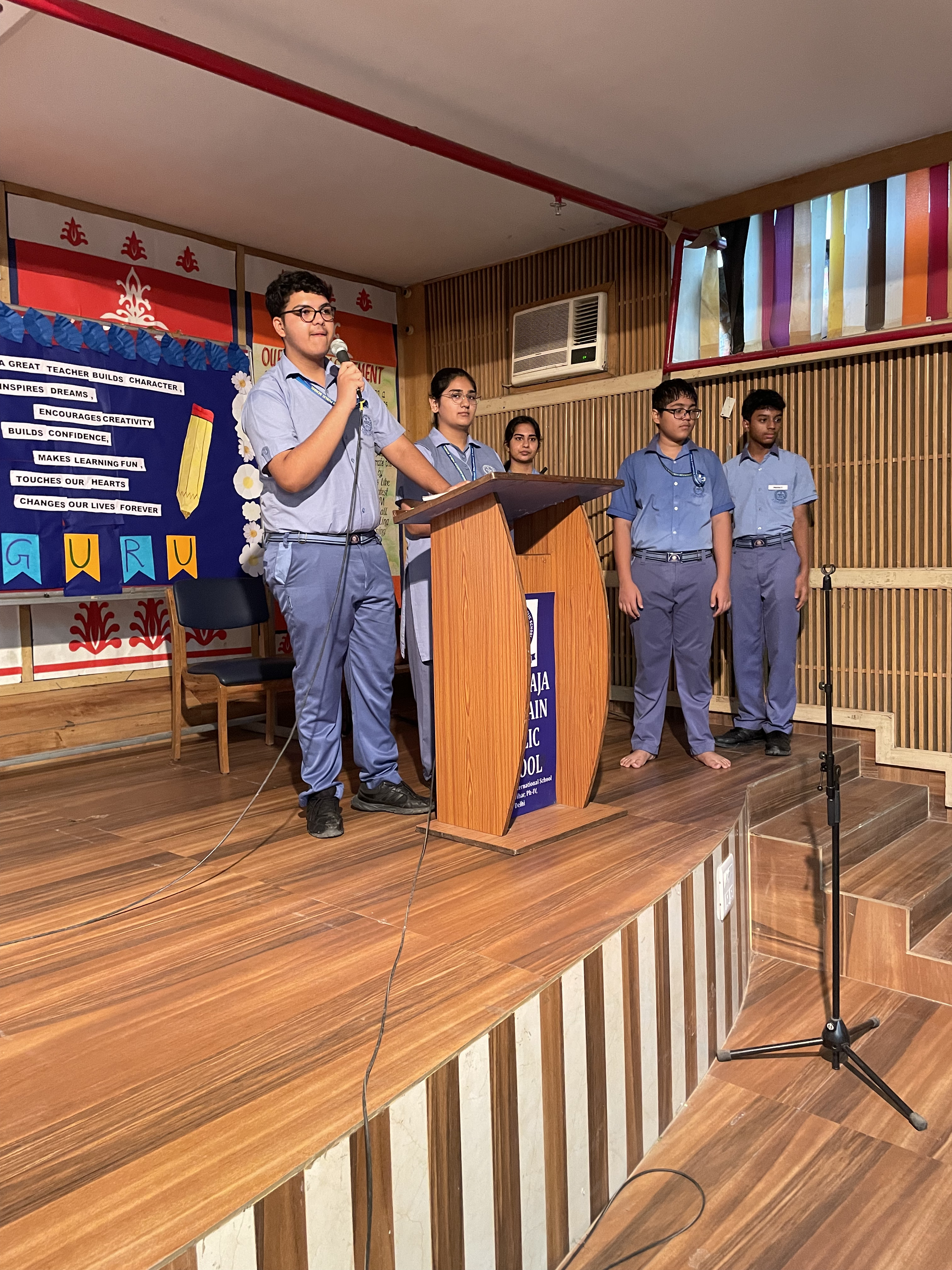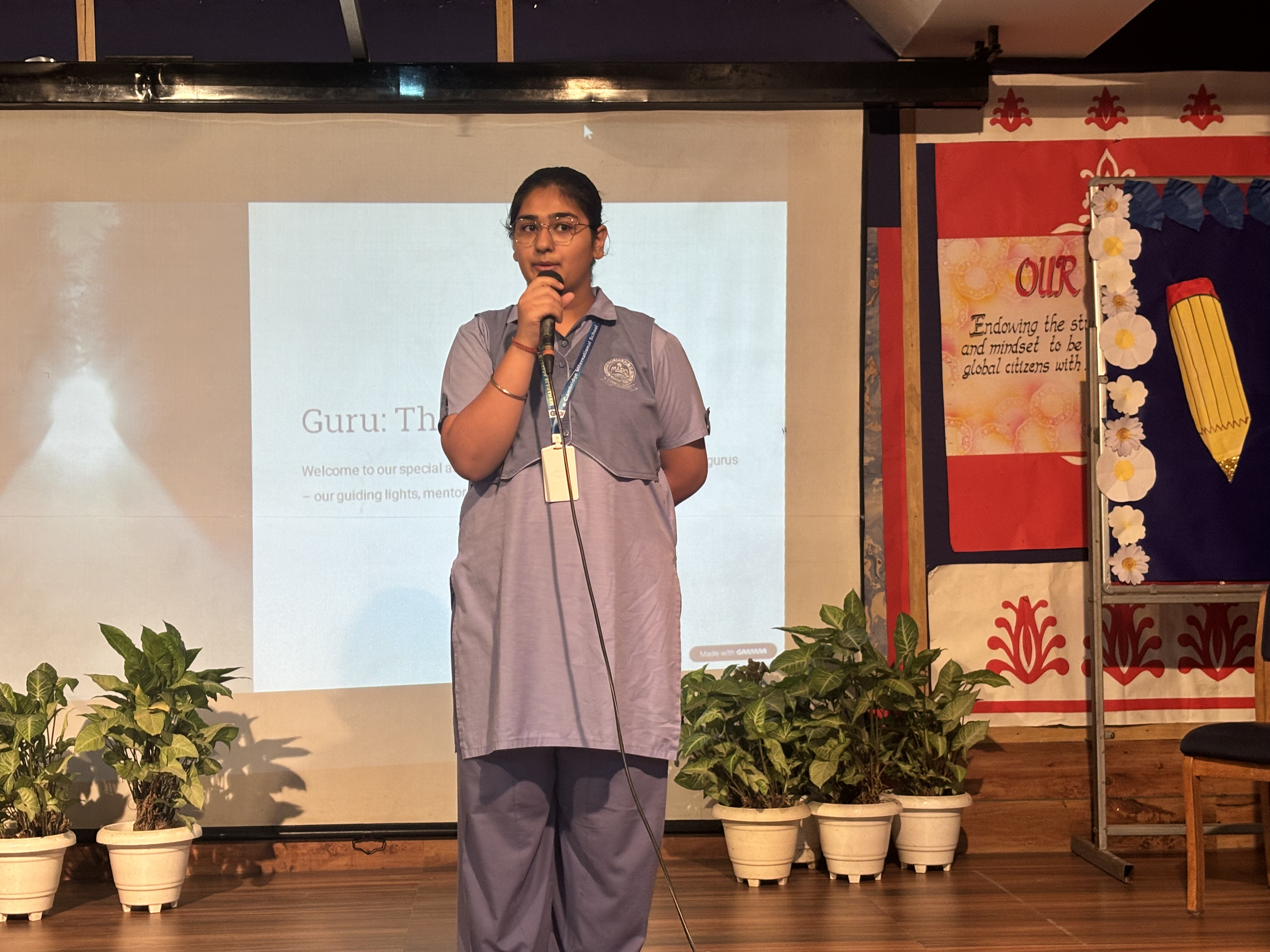 Synopsis – Ms. Parul Chauhan, Class Teacher of CAM 11, shared her words of appreciation for the assembly. She spoke about the significant role of a teacher in shaping young minds. She highlighted that a teacher is not just an instructor, but also a guide, mentor, and inspiration who nurtures curiosity, builds character, and empowers students to reach their full potential.