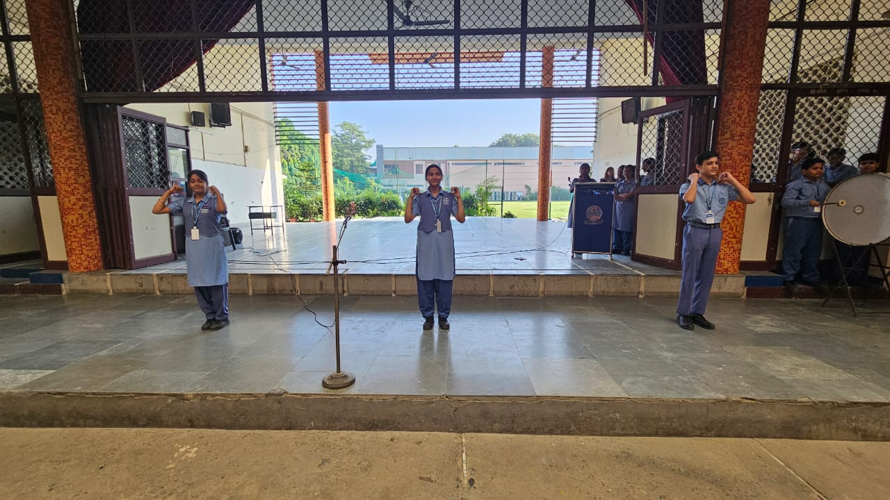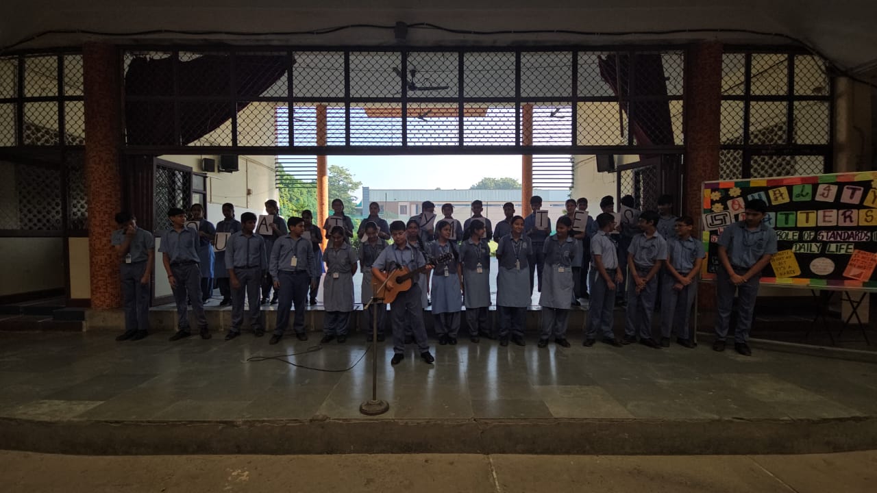 Adding to the charm of the event, students presented a live instrumental performance on the tabla, flute, and guitar, followed by a special song dedicated to World Standards Day sung by the entire class. The assembly concluded with the Unity Pledge, reaffirming the students’ commitment to uphold quality, safety, and unity in all endeavors. Finally, everyone participated in mass PT, promoting fitness and discipline.