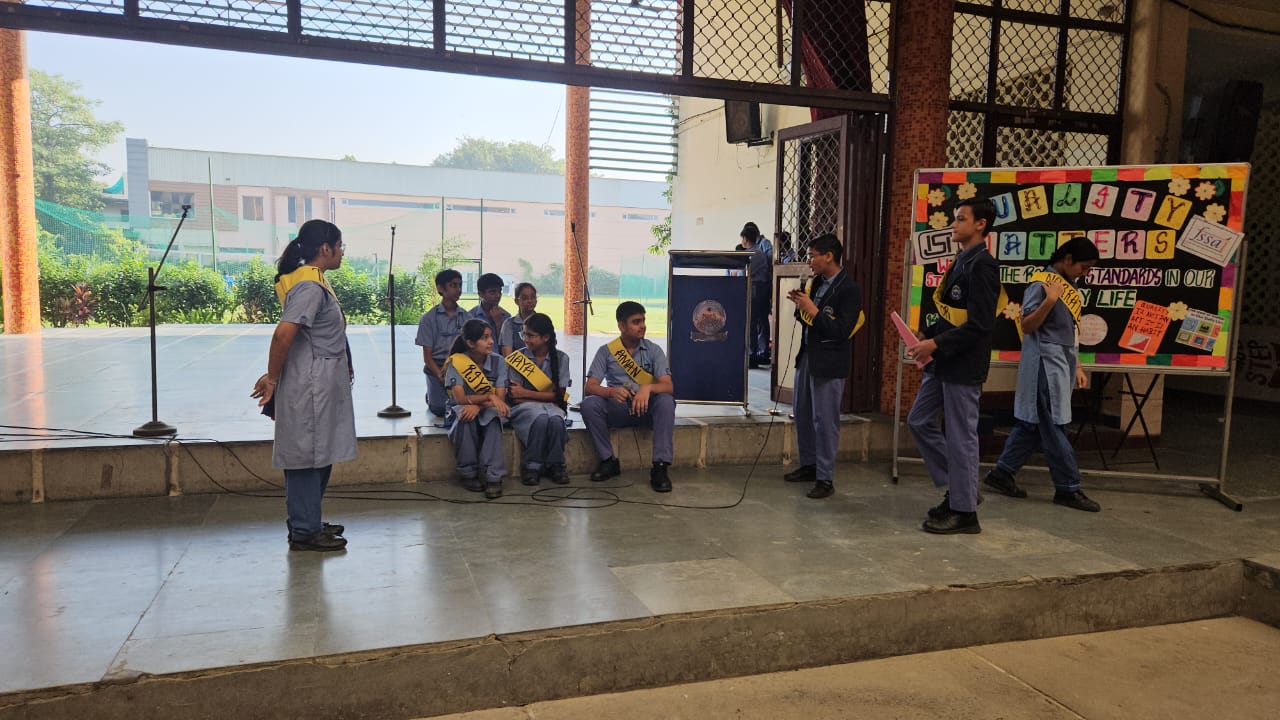 A melodious welcome song by Aradhna set a cheerful tone for the day. The highlight of the assembly was a skit titled “The Taste of Quality,” performed by the students to spread awareness about food quality and safety standards. Through their engaging performance, the students conveyed the message that maintaining quality in what we consume and do is essential for a healthy and progressive life.