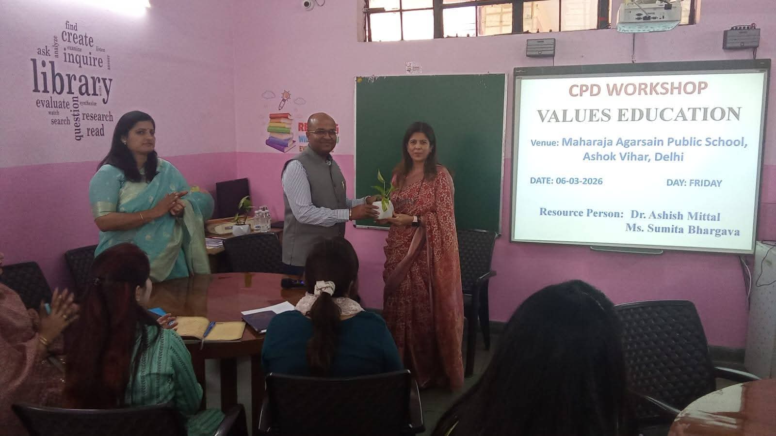 A Continuous Professional Development (CPD) programme on Values Education was conducted to strengthen teachers’ understanding of value-based learning and its role in nurturing responsible, ethical, and socially aware students. The session included interactive discussions, collaborative activities, and presentations focusing on integrating values into classroom practices in alignment with NEP 2020 and NCF 2023.