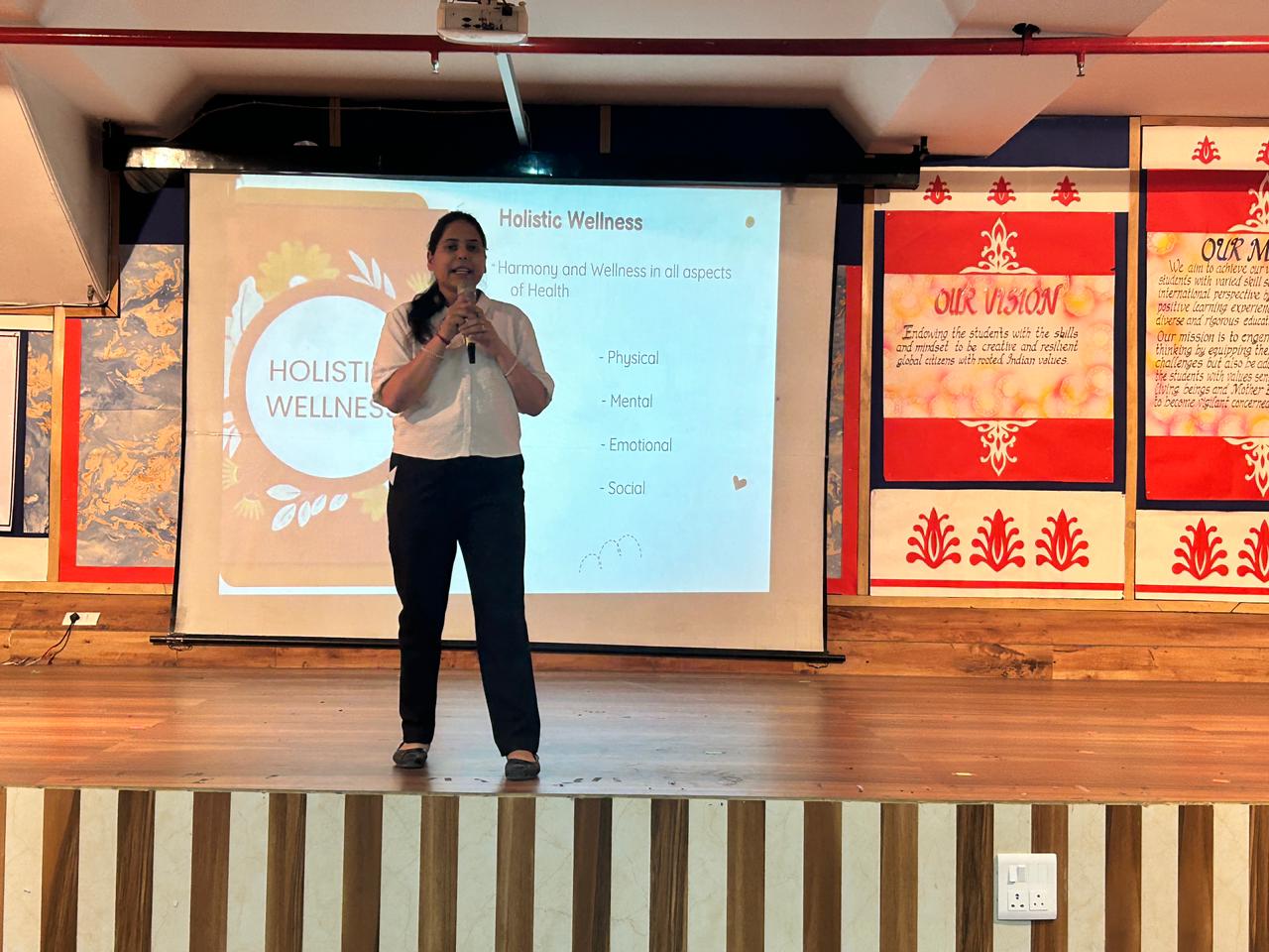 Maharaja Agarsain Public School hosted a highly informative session on Holistic Wellness for Children, conducted by Yakult. Led by Ms. Preeti, the session covered nutrition, hygiene, exercise, and stress management, aiming to deepen students' understanding of healthy living. Interactive activities engaged students, highlighting the importance of conscious choices for well-being. The active participation of students showcased their enthusiasm, captured in the session's pictures. We are grateful to Yakult for their valuable contribution to our students' well-being, as we prioritize their holistic development. This session added significant value to their learning journey, equipping them with essential knowledge and skills for leading healthy lives.